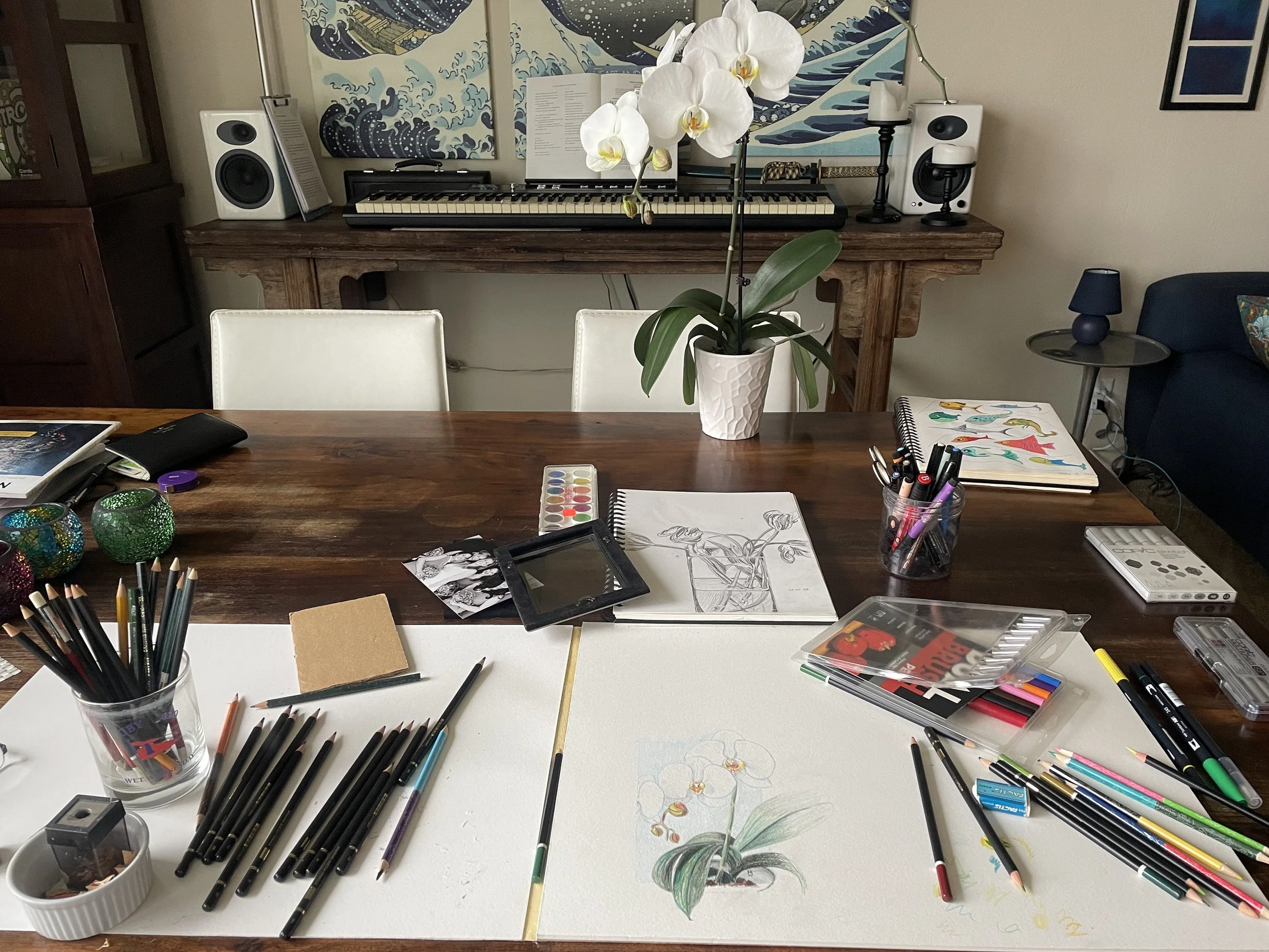 I’ve been drawing and painting since I was about five years old. Now I own a web design business that operates entirely virtually. There’s a big difference between creating analog work and creating digital work.